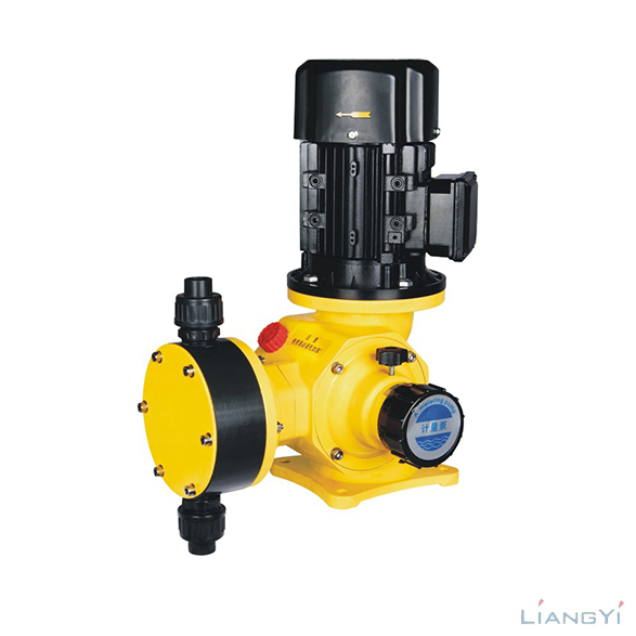 机械隔膜计量泵是由电机通过涡轮蜗杆驱动柔性隔膜来回往复运动,从而改变泵腔容积,以达到连续排吸液体目的的泵型,在原理上属于容积变化泵。其流量可按各种工艺流程的需要,在0-100%范围内无级调节,定量输送不含固体颗粒的腐蚀性和非腐蚀性液体。